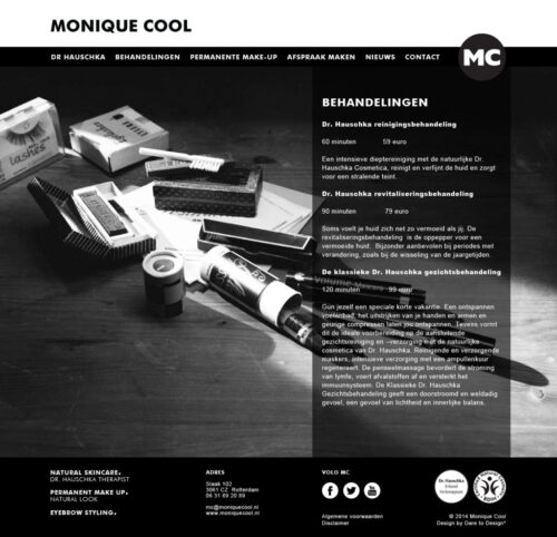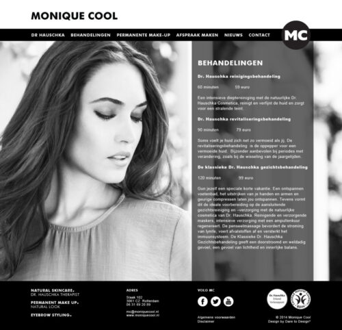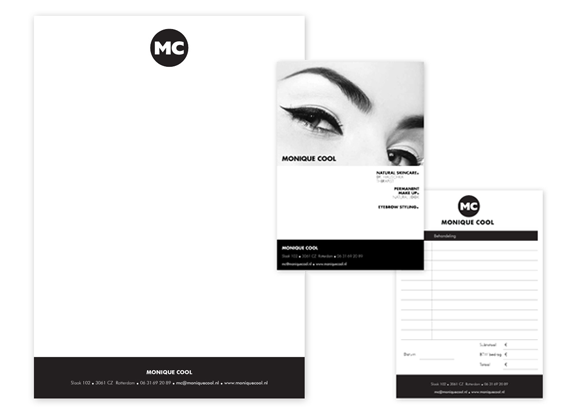 Voor Monique Cool, een schoonheidsspecialiste, heb ik een strakke en minimalistische branding ontworpen die de essentie van elegantie en professionaliteit vangt. Het monochrome kleurenpalet van zwart en wit legt de nadruk op tijdloze schoonheid en eenvoud, en versterkt het luxe gevoel van de dienstverlening.