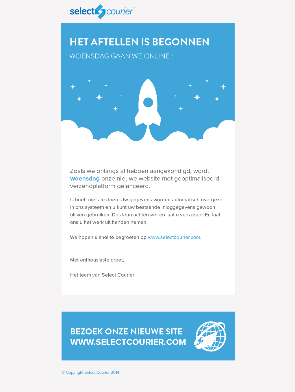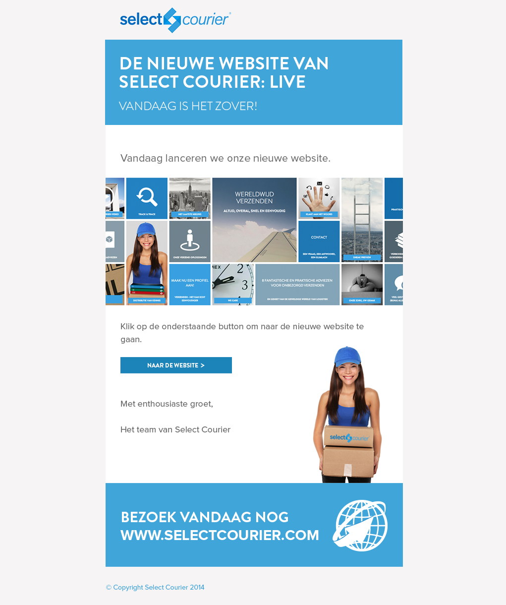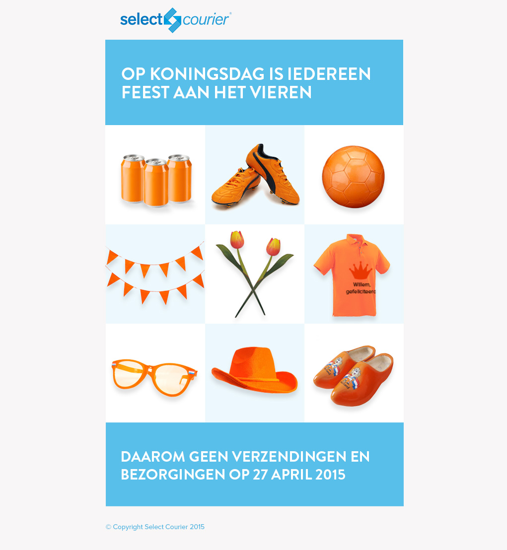 Select CourierVoor Select Courier heb ik bijgedragen aan zowel het ontwerp van de website, mailings als het gebruiksvriendelijke verzendplatform.
